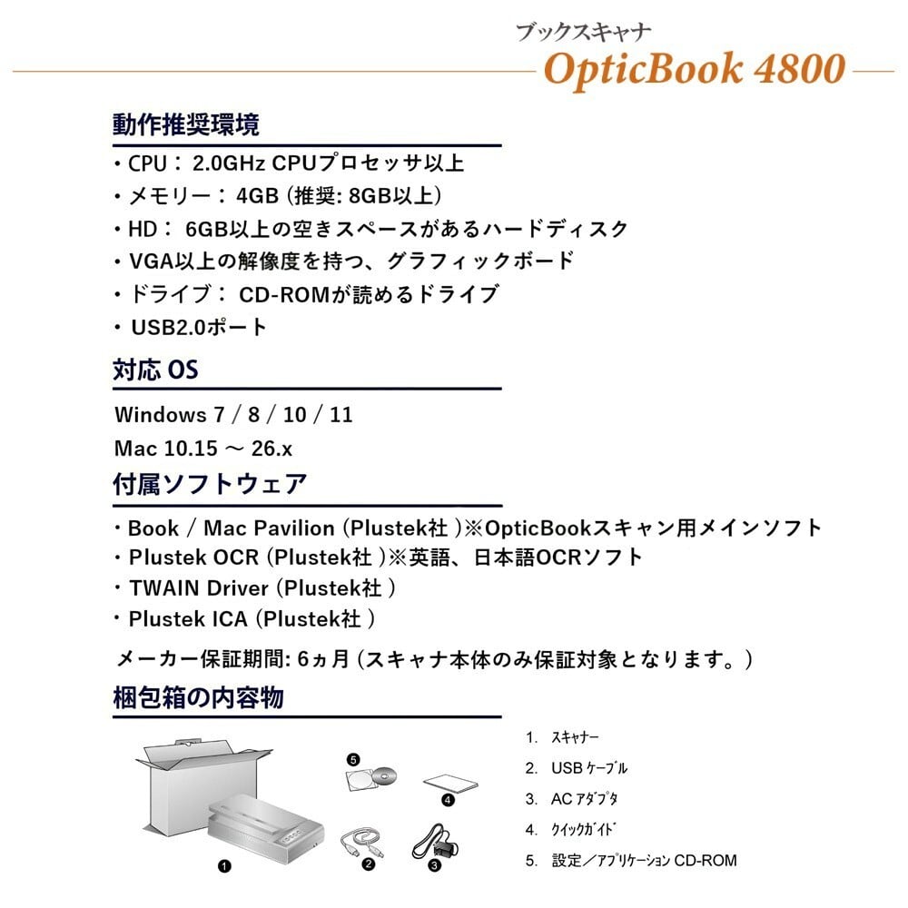 6ヶ月 (スキャナ本体のみ保証対象となります。)
